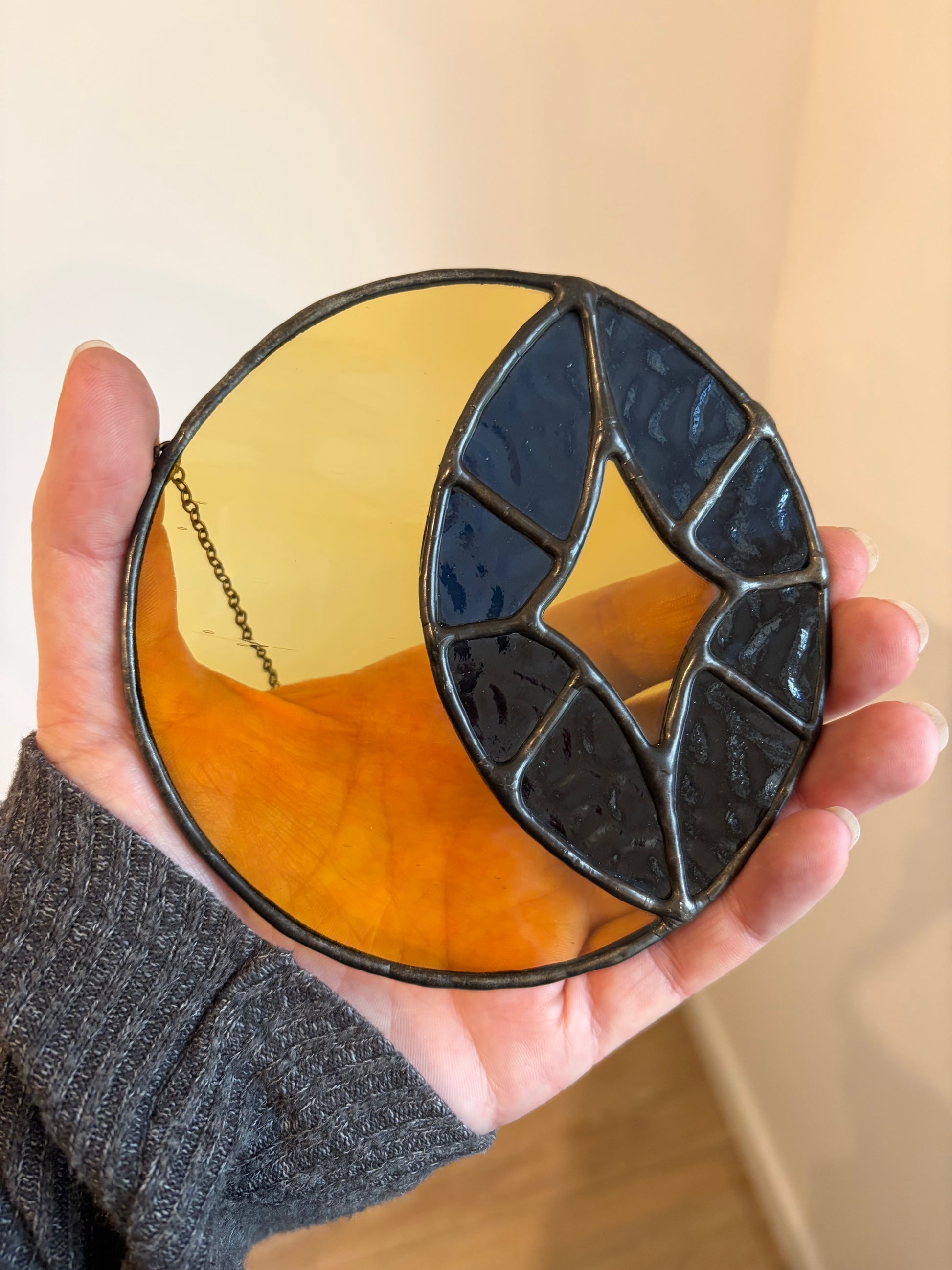 ⚡️ Entretien : les soudures peuvent s'oxyder avec le temps. Pour nettoyer ton vitrail, frotte-le doucement avec un chiffon microfibre. Évite le contact avec l'eau pour préserver les soudures.